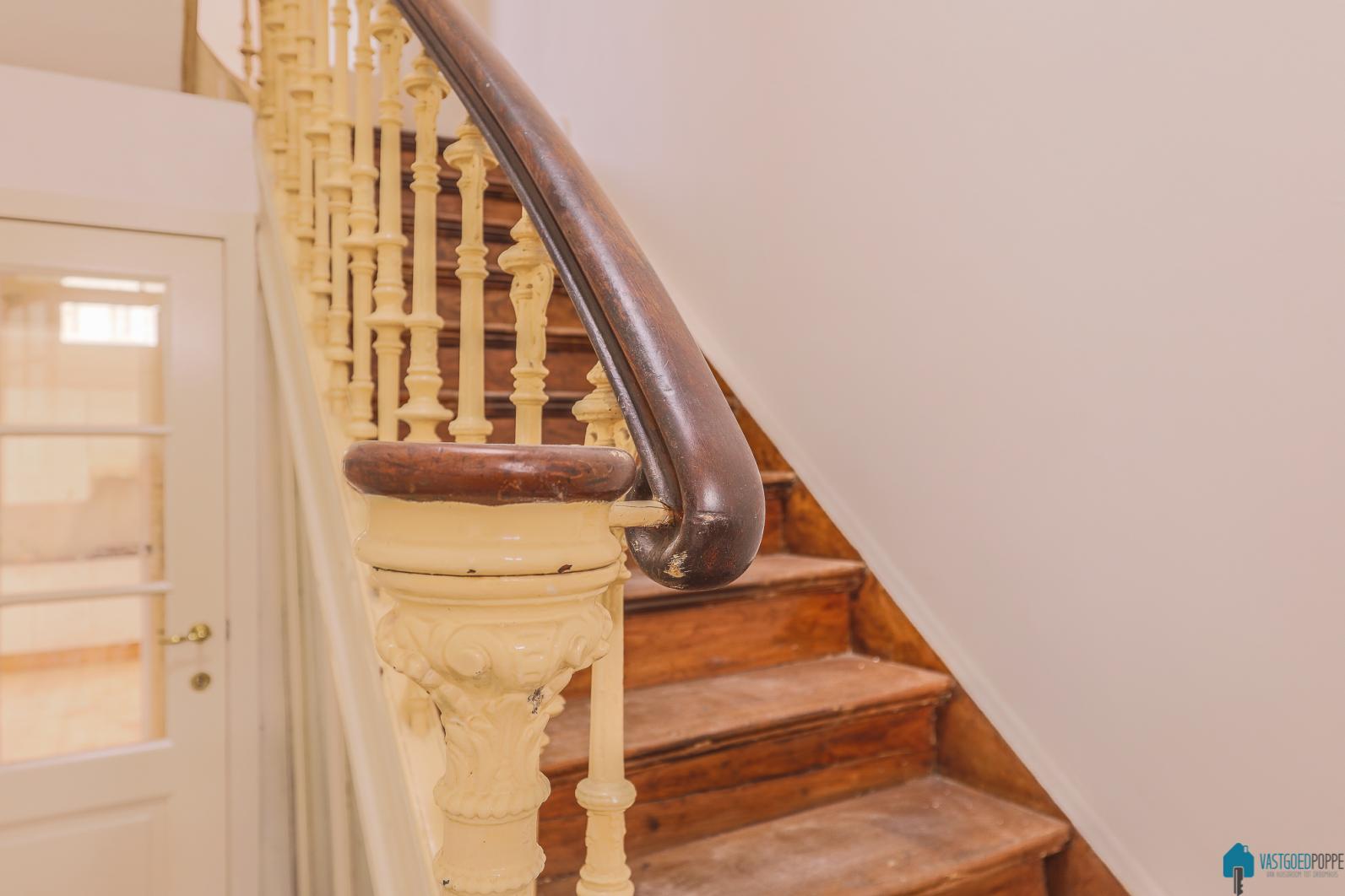 Via de traphal betreden we maar liefst 7 slaapkamers en meerdere badkamers op de verdiepen.