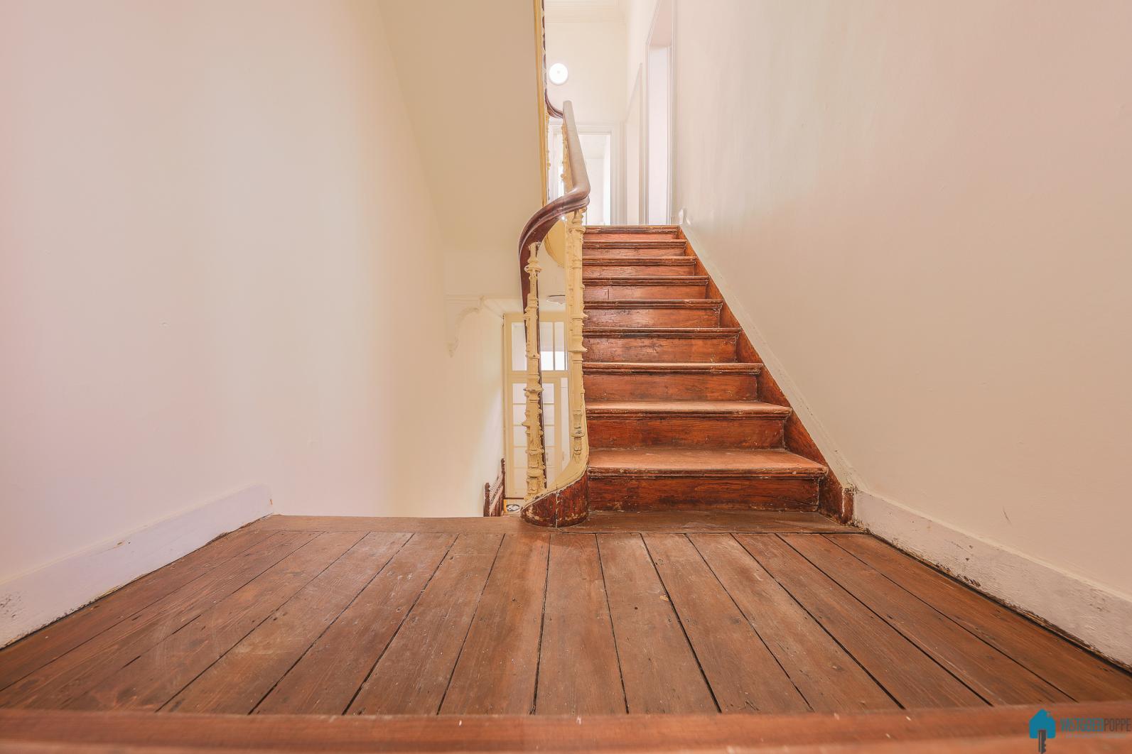 Via de traphal betreden we maar liefst 7 slaapkamers en meerdere badkamers op de verdiepen.