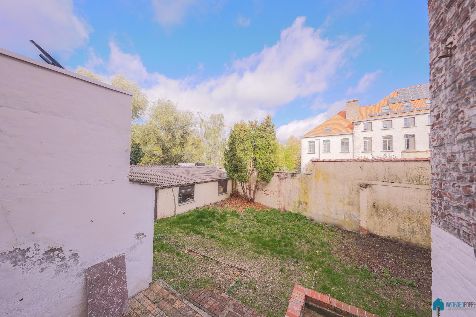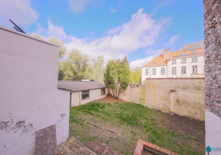 De tuin en garage palen achteraan aan een rustige zijstraat welke uitgeeft aan de Leie.